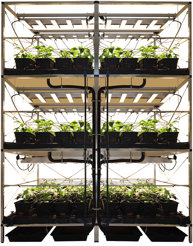 Der G-TOWER V4 ist mit seinen drei Stockwerken und zwei Reihen mit einer Aufbaufläche von 2,56×1,40×3,00 Meter (LxBxH) der Größte der G-Tower Serie und bietet Platz für bis zu 96 Töpfe.